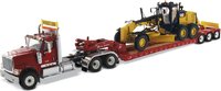Kenworth T880 SBFA Daycab Tridem Tractor with Trail King TK120 HDG Lowboy Trailer (Black cab, Black trailer regular version) in 1:50 scale