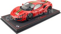 Ferrari 488 Rosso Corsa w/ Carbon Wheels and Yellow Stripe in 1:18 scale Leatherette Base and Display Case are Included